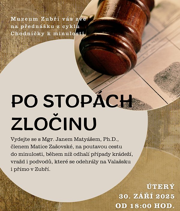 Poslední možnost vidět tuto jedinečnou výstavu! - Přednáška: Chodníčky k minulosti – Po stopách zločinu